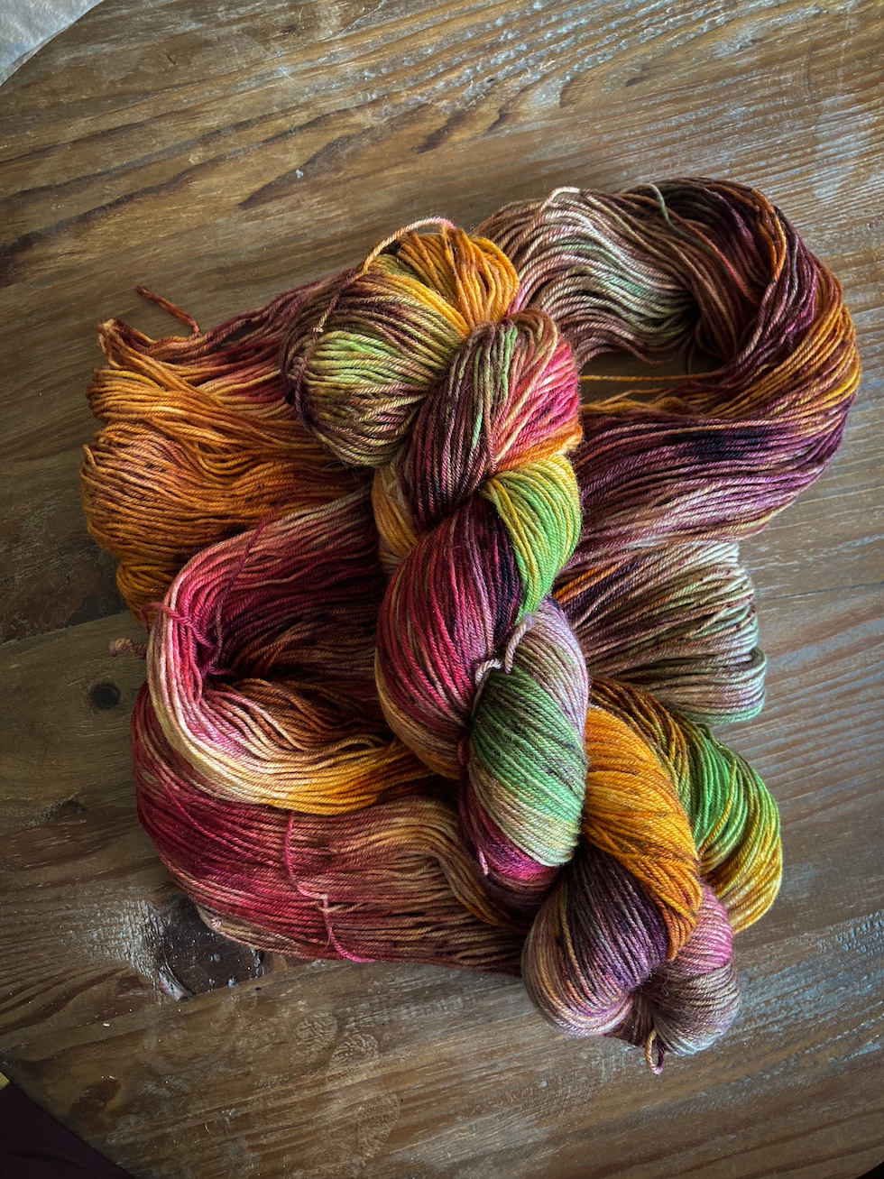 Caramel Apple Hand Dyed Fingering Weight Sock Yarn