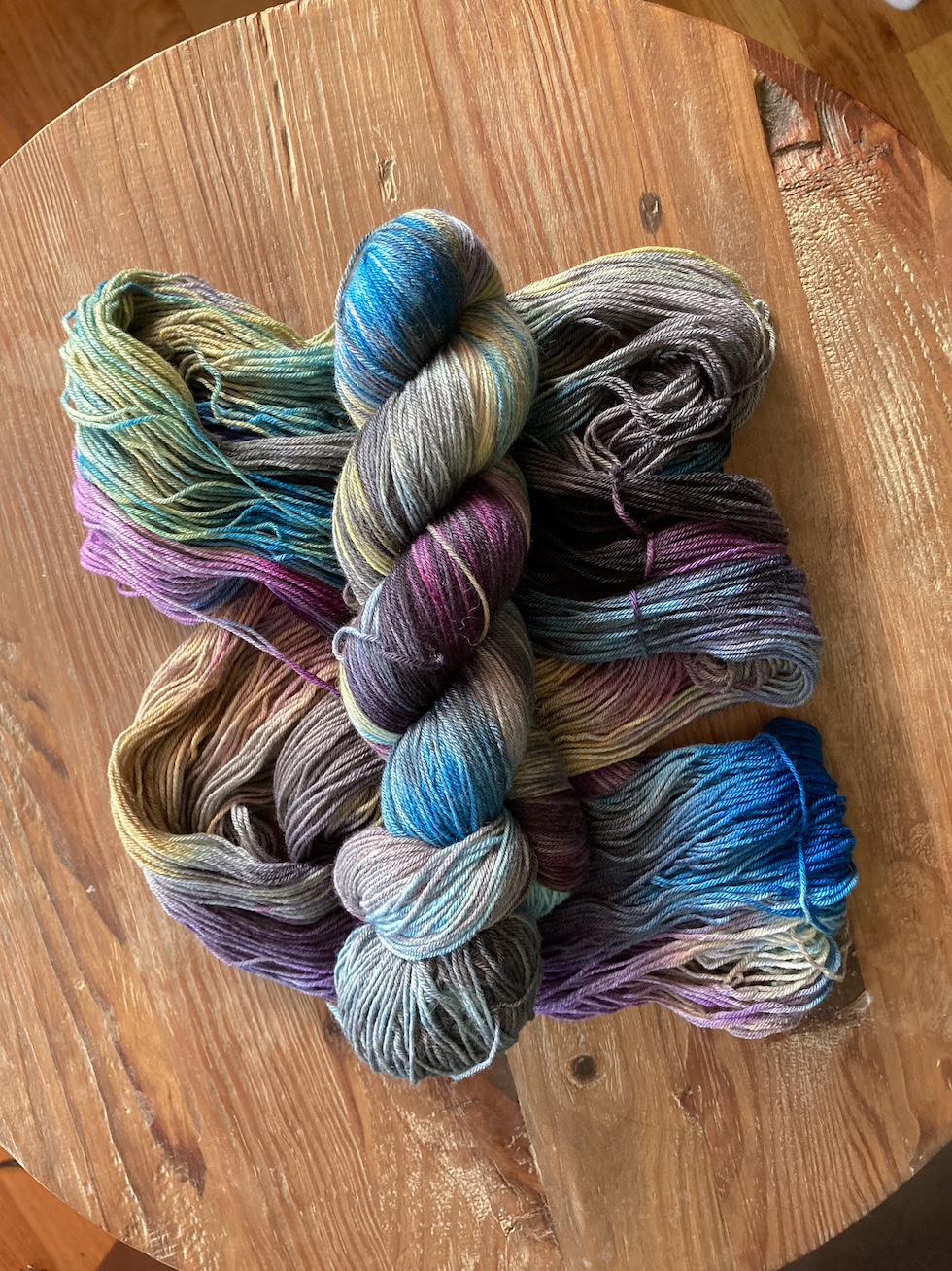 Due to the nature of hand dyeing, there are no dye lots and some variation between skeins is to be expected. If you need more yarn than is currently available, please feel free to reach out about a larger batch!