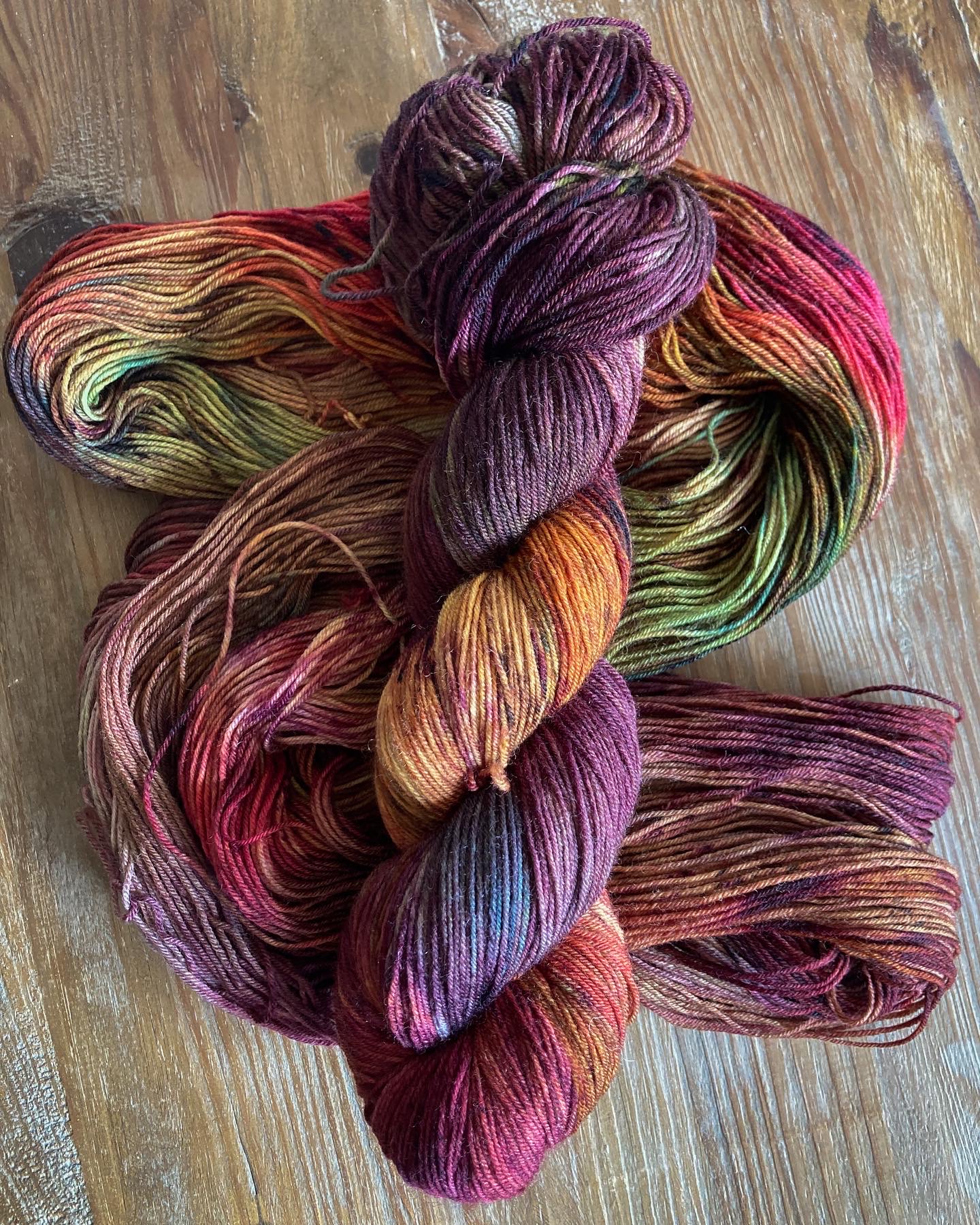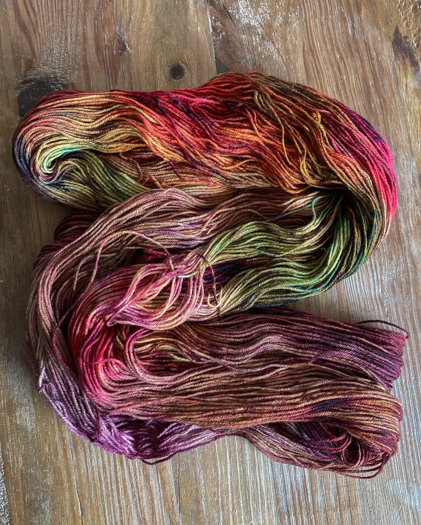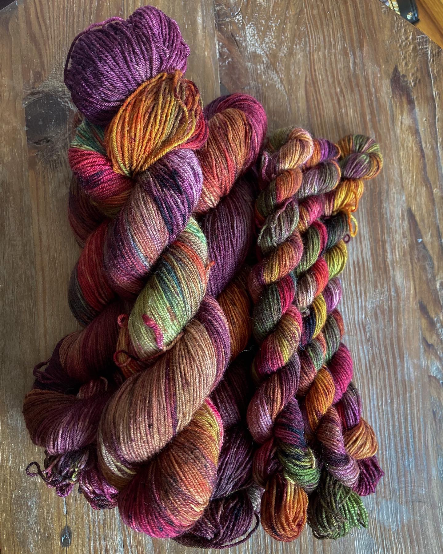 Due to the nature of hand dyeing, there are no dye lots and some variation between skeins is to be expected. If you need more yarn than is currently available, please feel free to reach out about a larger batch!