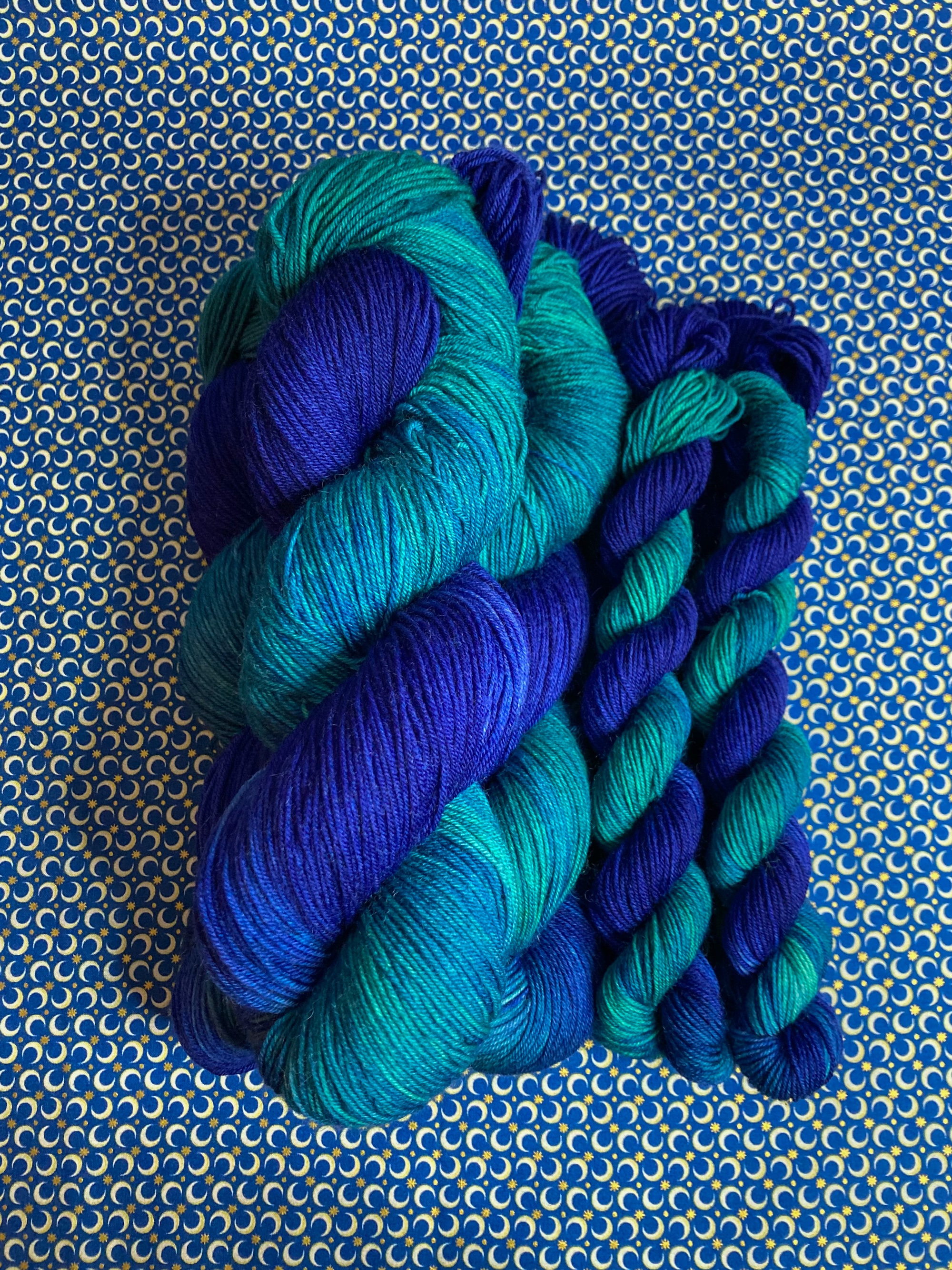 Due to the nature of hand dyeing, there are no dye lots and some variation between skeins is to be expected. If you need more yarn than is currently available, please feel free to reach out about a larger batch!