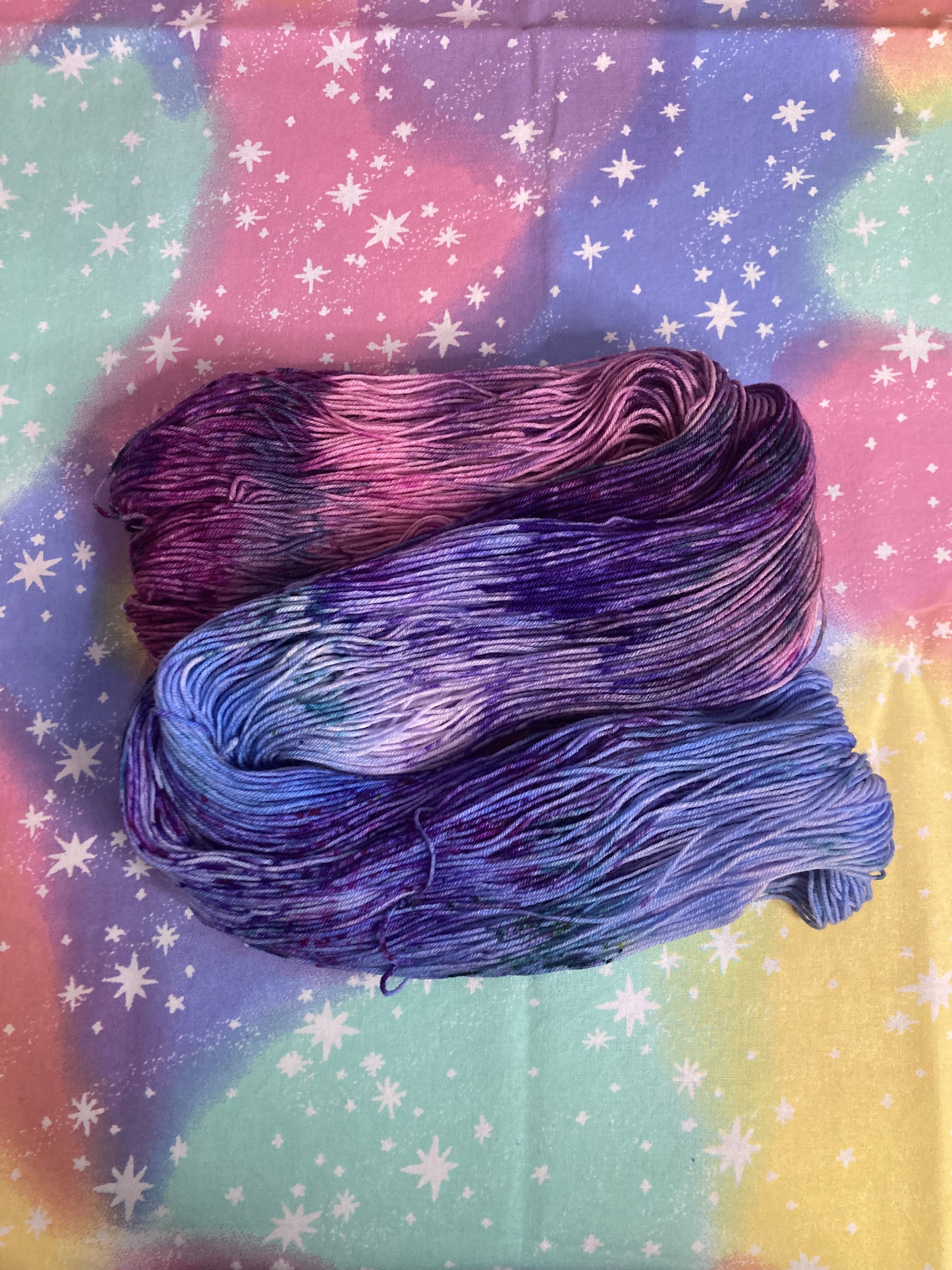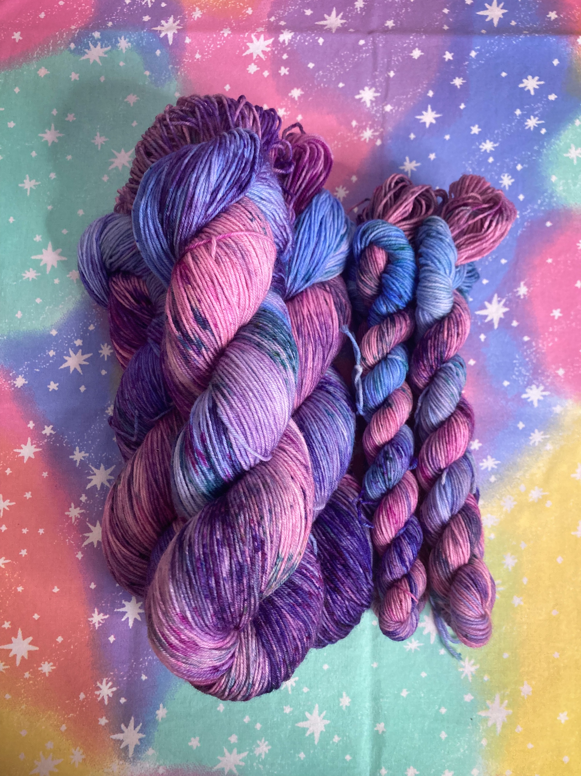 Due to the nature of hand dyeing, there are no dye lots and some variation between skeins is to be expected. If you need more yarn than is currently available, please feel free to reach out about a larger batch!