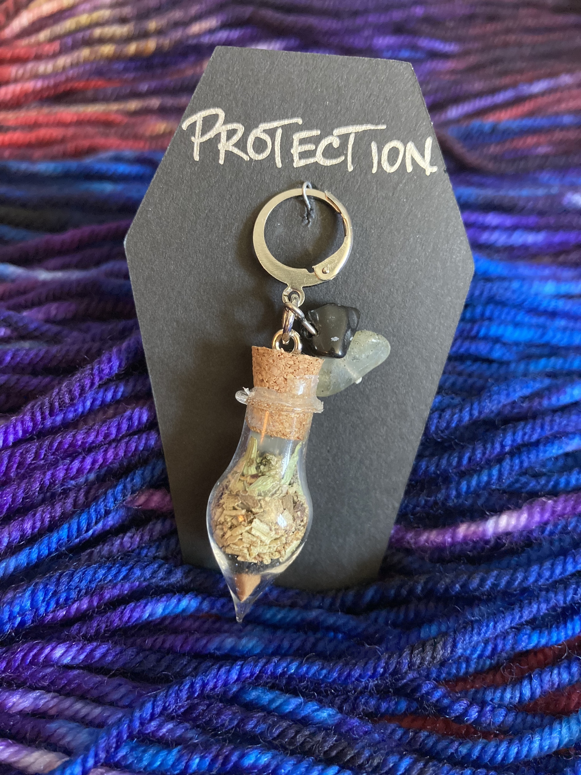 These witch jar stitch markers are perfect to bring intention to your project and carry it with you on the go!