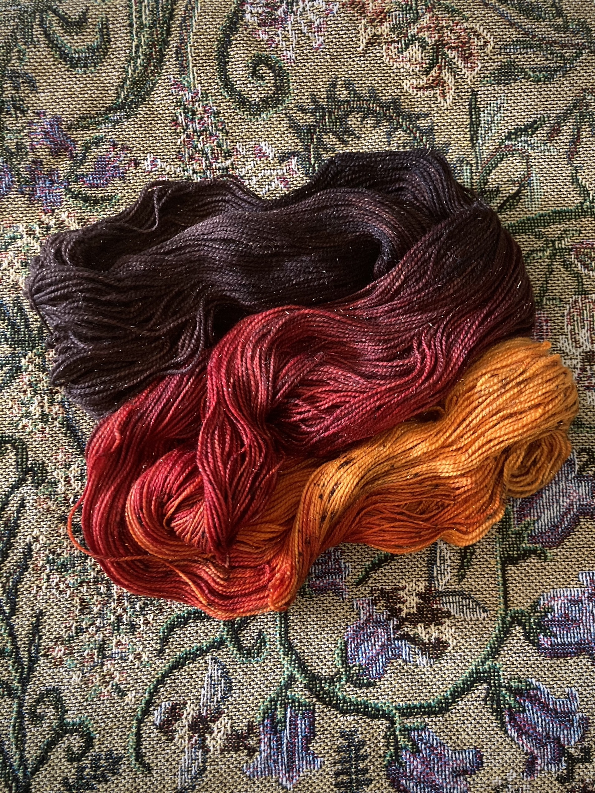 Due to the nature of hand dyeing, there are no dye lots and some variation between skeins is to be expected. If you need more yarn than is currently available, please feel free to reach out about a larger batch!