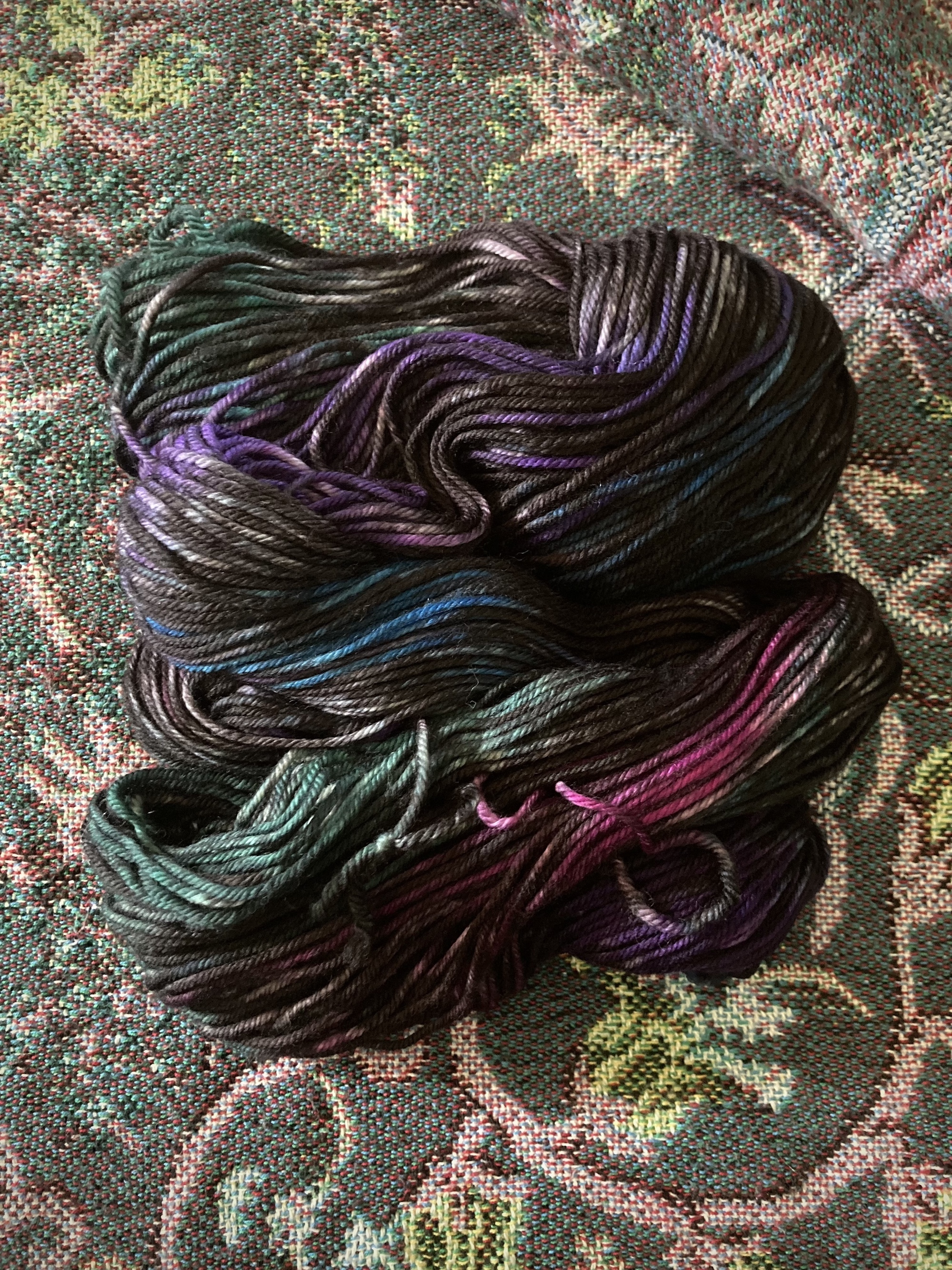 Due to the nature of hand dyeing, there are no dye lots and some variation between skeins is to be expected. If you need more yarn than is currently available, please feel free to reach out about a larger batch!